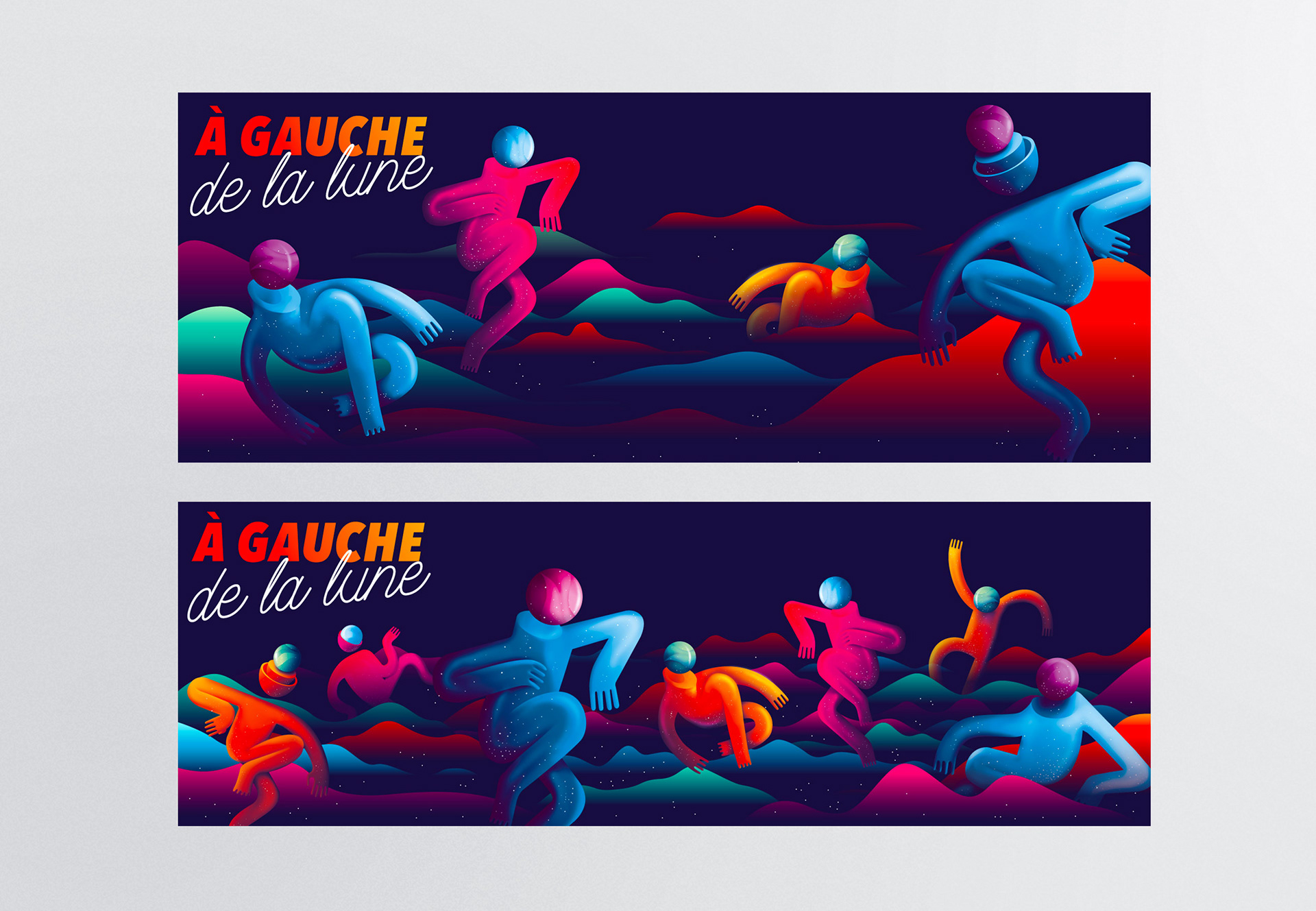 Création de l'univers graphique de la saison 2018 de la société lilloise de production de concerts À Gauche de la lune.