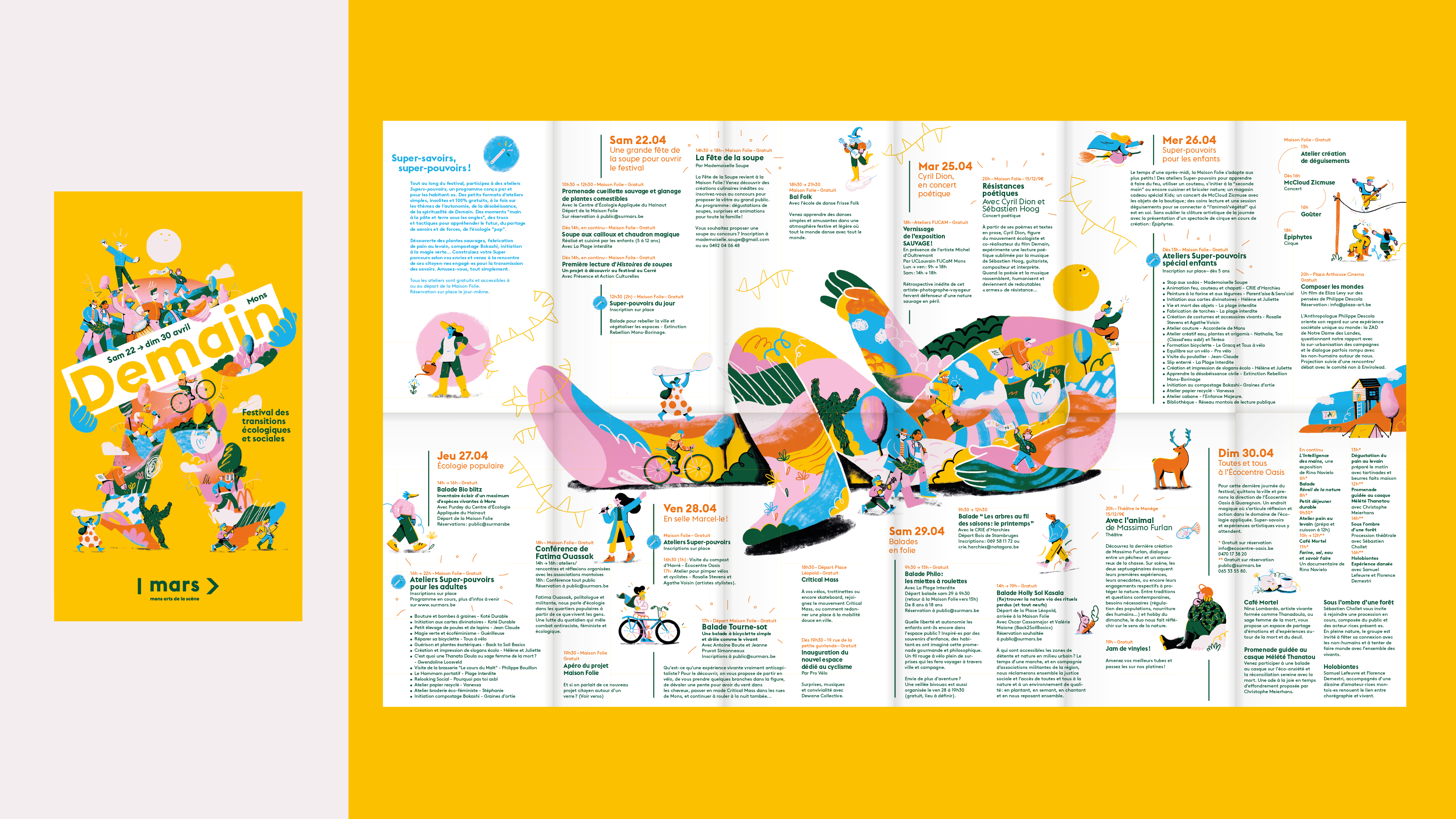 Conception de l'affiche et des éléments graphiques de l'éco festival Demain. Cette année, le propos était plus militant, avec une orientation sociale.