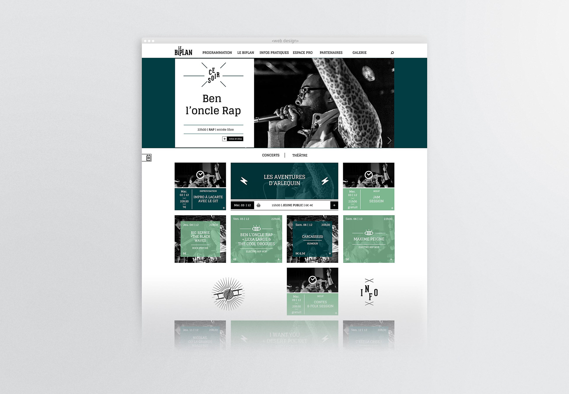 Salle associative, Le Biplan a animé pendant 20 ans le quartier de Wazemmes à Lille avec ses groupes et ses spectacles. Nous avons eu la chance d'y participer pendant plus de 5 ans en réalisant la refonte de l'identité visuelle et des différents supports de communication.