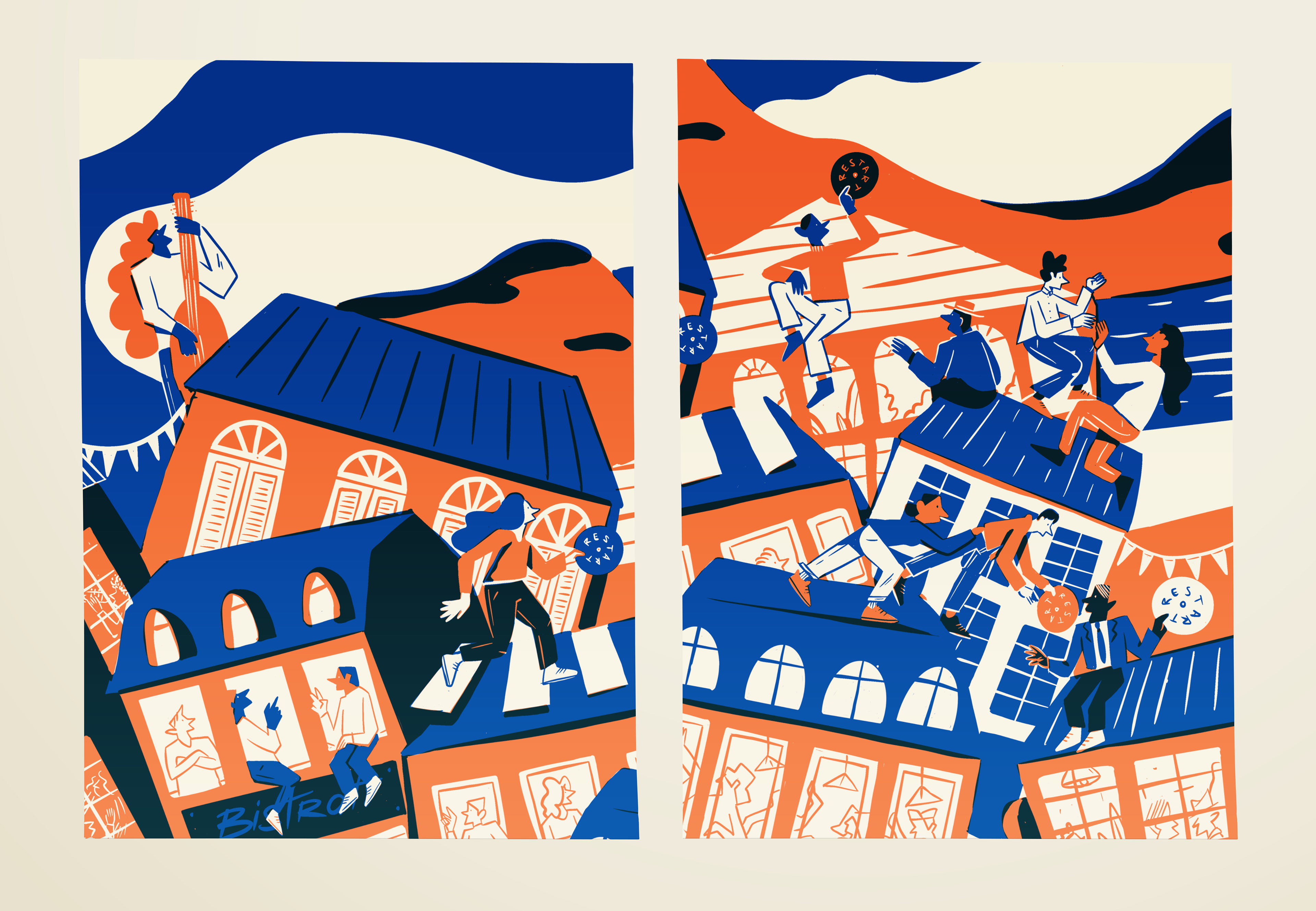 Création de cette illustration en bichromie pour le concours RESTART