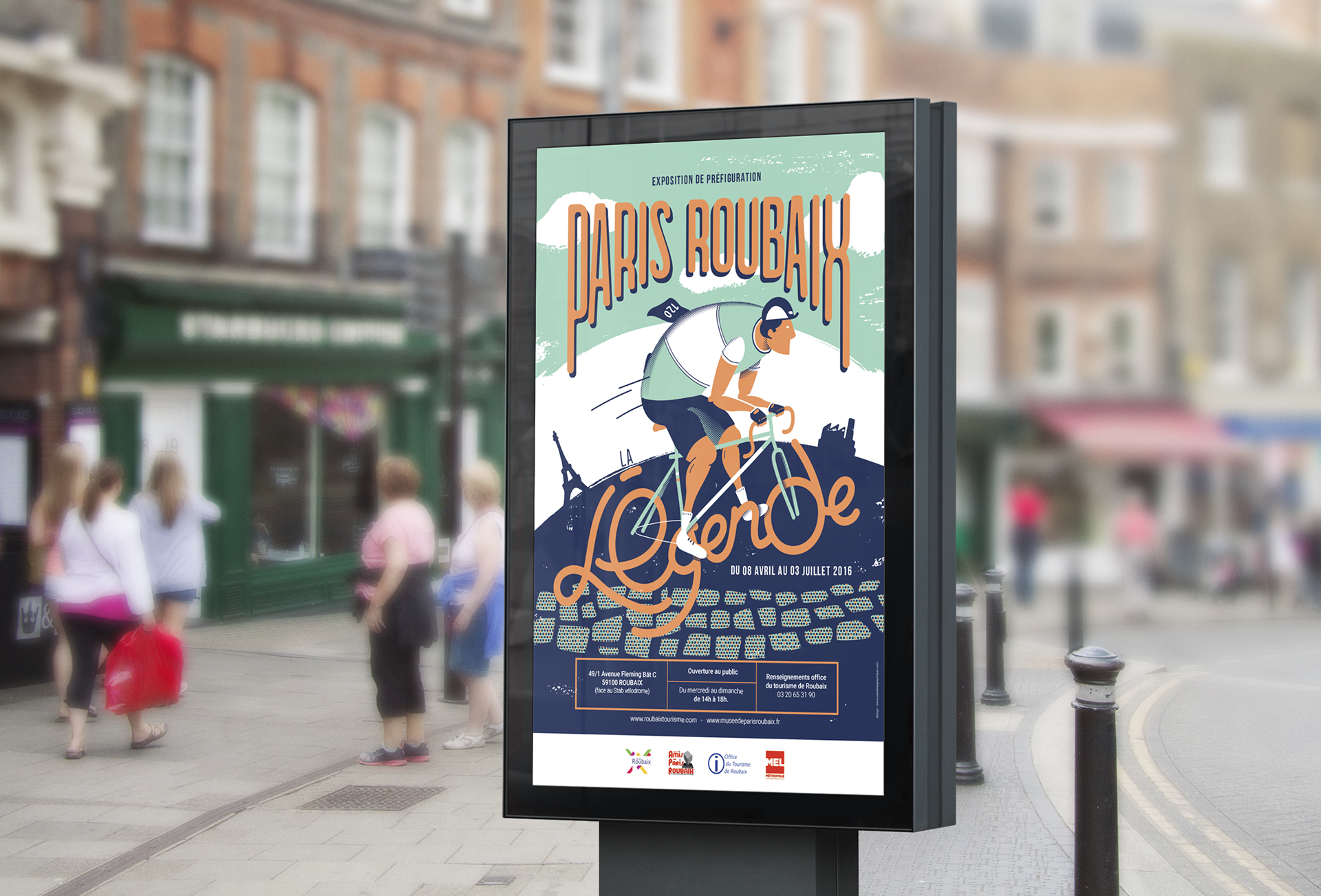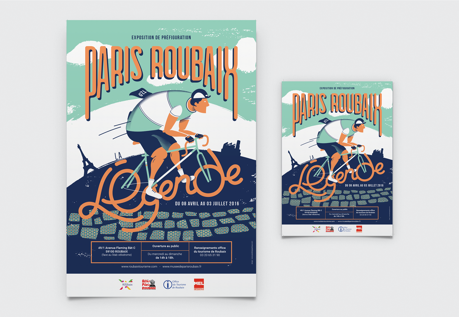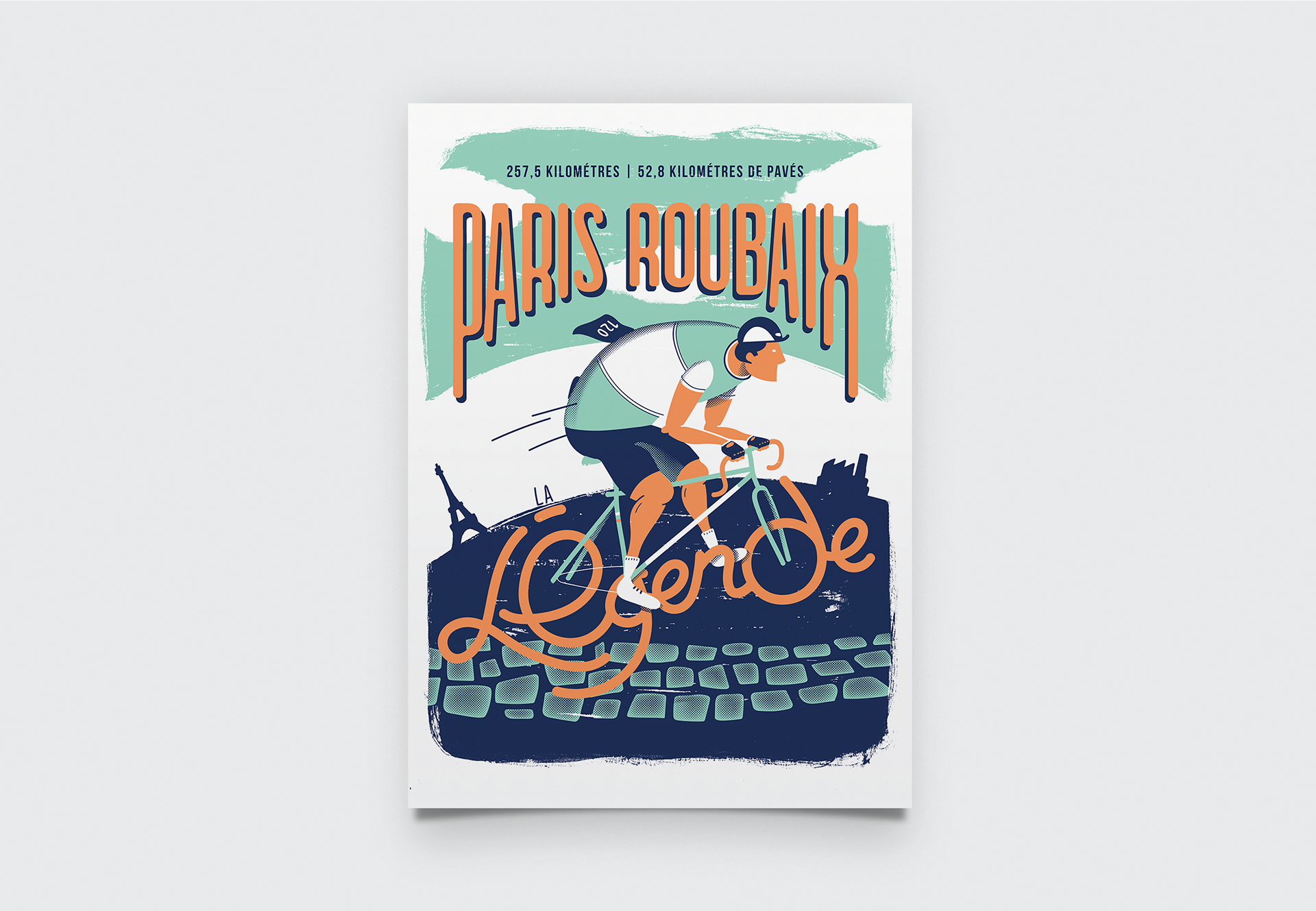 Réalisation pour la première année de l'affiche Paris Roubaix La Légende. Sérigraphie limitée à 70 exemplaires, embossée et signée